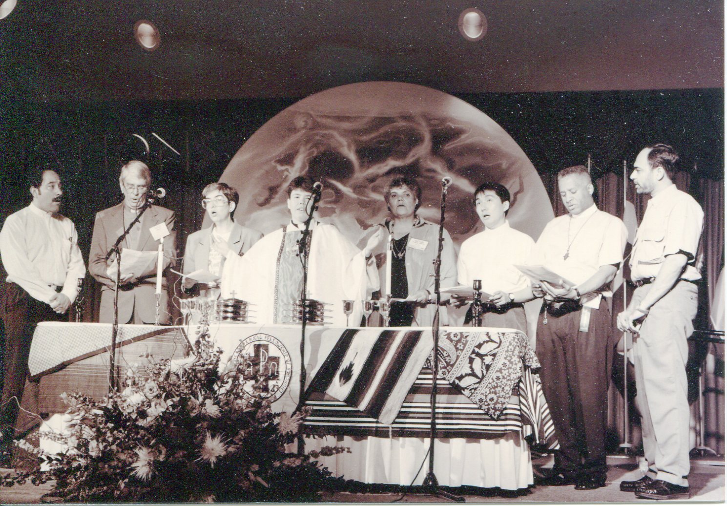 Troy Perry and other MCC leaders at the altar, of MCC-SF, 1988.